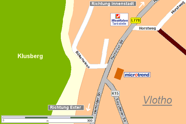 Wegbeschreibung zu unserem Computer-Shop, der direkt an der Herforder Straße zwischen Exter und der Vlothoer Innenstadt liegt.