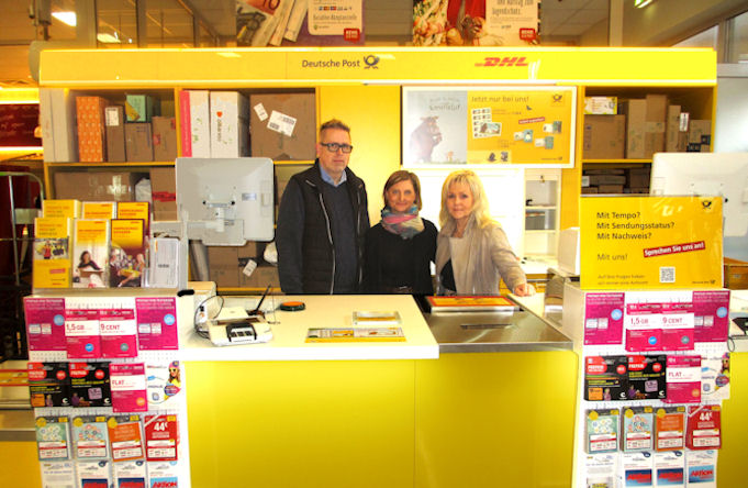 Das Foto zeigt die Postfiliale am Eröffnungstag. Mit auf dem Foto sehen Sie: Matthias Bierwagen, Angela Wriedt und Karin Backmeister. Foto: 1. März 2019.