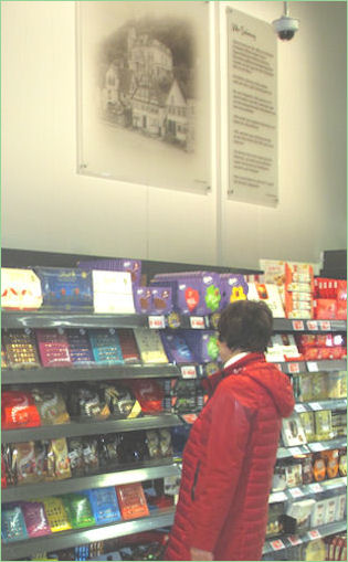 über den Verkaufsregalen sind viele alte Vlothoer Ansichten platziert,
