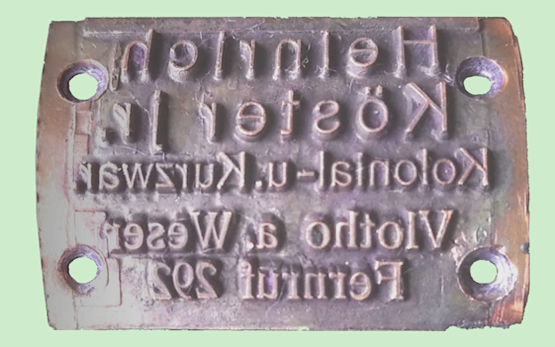 Links: Das hier abgebildete spiegelverkehrte Klischee aus Kupfer, ist so in der Kasse eingebaut und diente zum Aufdruck auf den Kassenbon. Bedenkt man das Alter (1939) der Kasse, so ist das schon etwas Besonderes für diese Zeit. Rechts: Zur besseren Ansicht wurde die Abbildung gedreht.