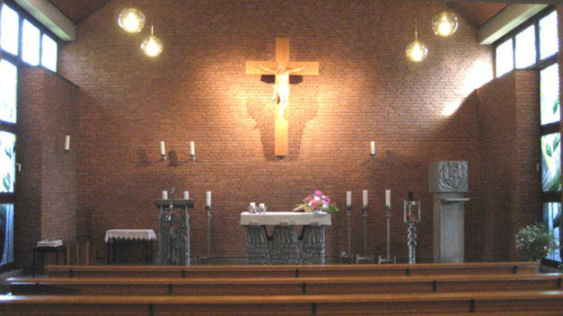 Nordhues geweiht. Altar, Tabernakel und Ambo im Kirchenraum sind im