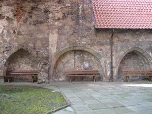 Von der alten Klosterkirche sind noch die Sakristei und Rundbögen des