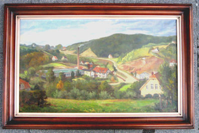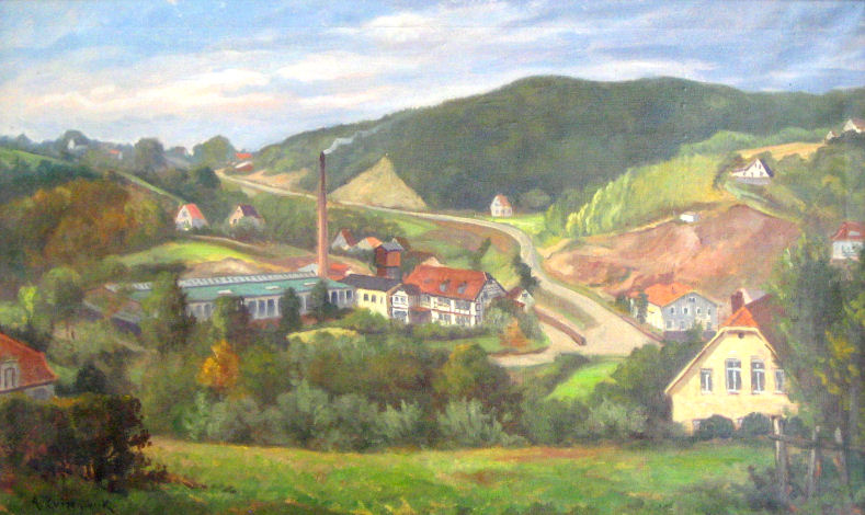 Ölgemälde von der Papierfabrik Union Werk von Deylen. Das genaue Jahr der Entstehung steht nicht fest. Sicher ist jedoch, dass es zwischen 1951 und 1955 gemalt wurde. Auch der Künstlername ist nur teilweise lesbar. Erste Besitzerin dieses Bildes war Frau Luise Prüßmeier. Das Bild ist heute im Besitz der Familie G. Westhoff. |