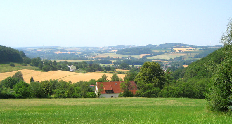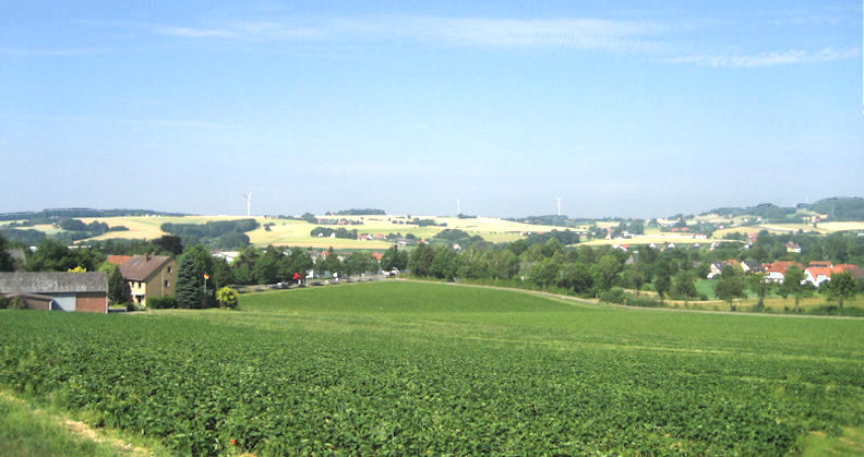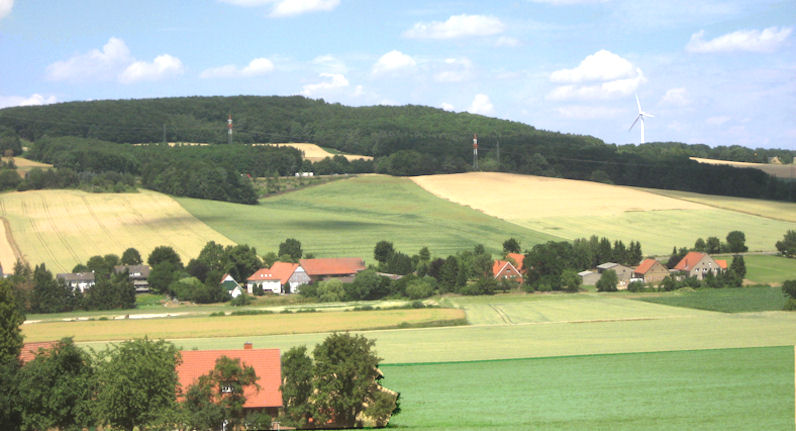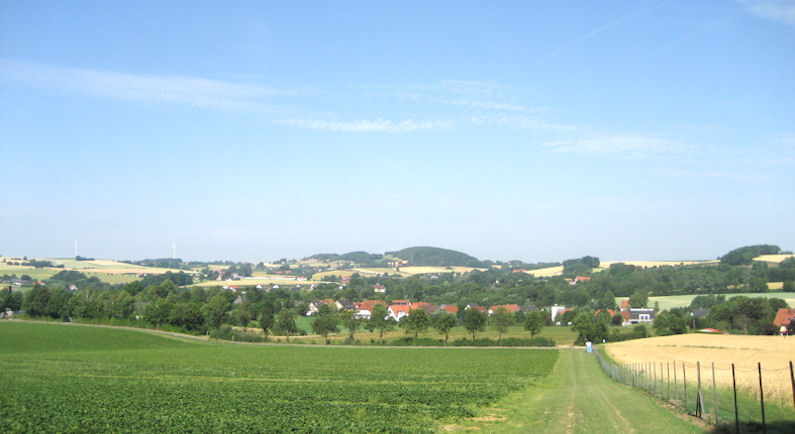 Links in der Ferne ist der Ortsteil Exter zu sehen. Rechts Solterwisch. Im Vordergrund ist die Voßgrund, wo dieses Foto aufgenommen wurde. Foto: 2010.