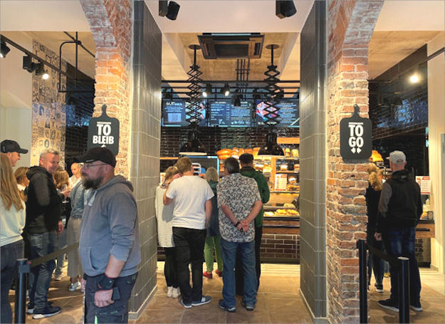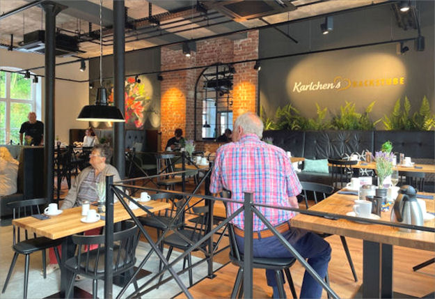 Nach der Speisenauswahl geht es linksseitig ins Café bzw. in den Speiseraum Foto: 2. August 2023