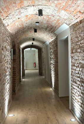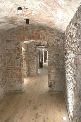 Auf das historische Kellergewölbe, welches mit Strahlern oben und unten versehen ist, ist Karsten Krüger besonders stolz. Hier wird noch ein Weinkeller eingerichtet. Interessenten können den Aufzug nehmen, um diesen besichtigen. – 2. August 2023