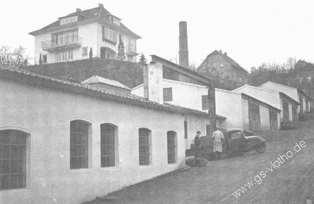 Die Fabrikgebäude an der Hünenburg mit der "Villa Henke". Die Fabrikgebäude sind inzwischen abgerissen und durch neue Wohnhäuser ersetzt worden.