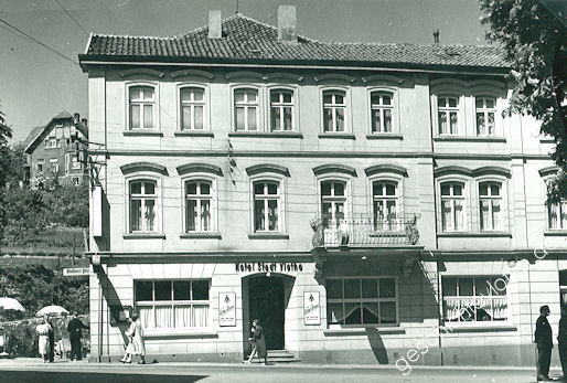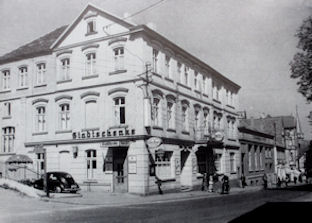 Das Gebäude Lange Straße 121 im Jahr 1953. Noch strahlt das Hotel im
