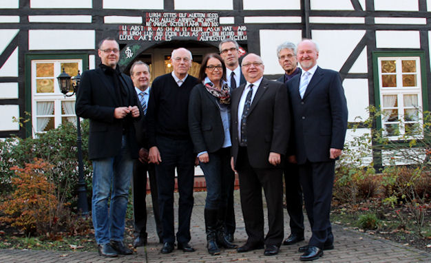 Gemeinsam mit seiner Tochter Britta Lohmeier-Bloch und Hans-Werner Meyer hatte Fritz Lohmeier im historischen Fachwerkhaus, dem Verwaltungsgebäude, die Gratulanten begrüßt. Zu ihnen gehörten der Vize-Bürgermeister Ulrich Sturhahn, Andreas Kämmerling und Karl-Heinz Büscher von der Volksbank und Ortwin Scheffer von der Sparkasse Herford.